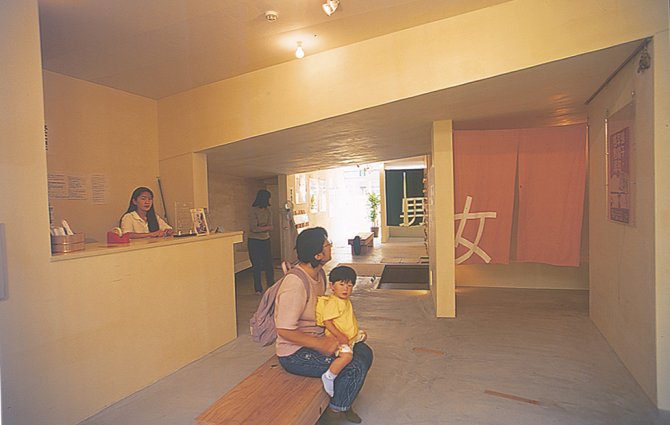 温泉街に佇むモダンな黄漆喰の建物は、訪れてみなければその全貌がつかめない、不思議な空間。ぜひ鳴子の湯とともに、温泉街にたちこめる硫黄を思わせる建物もご覧ください。
